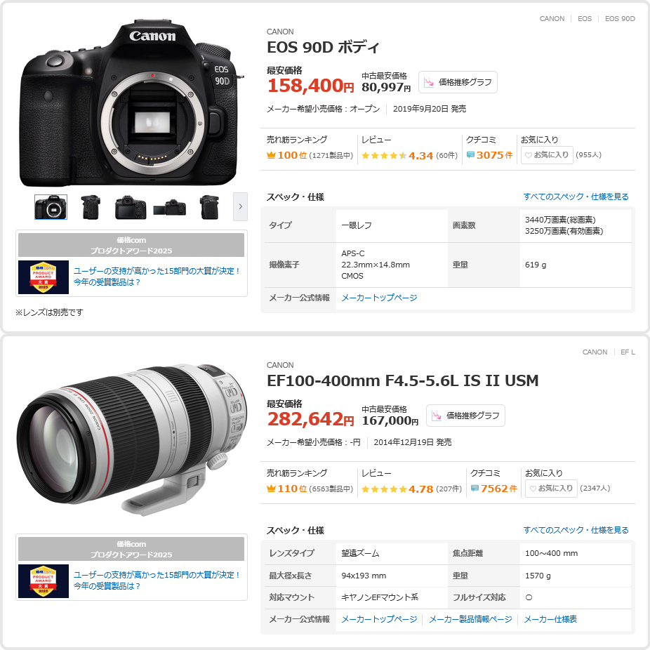 | … | 33126/03/17(火)10:45:35 ID:ukPWTDXINo.1411550396+>>今ヨドバシのカタログで40万くらいするカメラ眺めてるんですけどクロノちゃんってこういうの使ってるんでしょうかね >メの有識者が言うにはこれとこれの組み合わせらしいですにょ >fu6425952.jpg にしても高いですね |