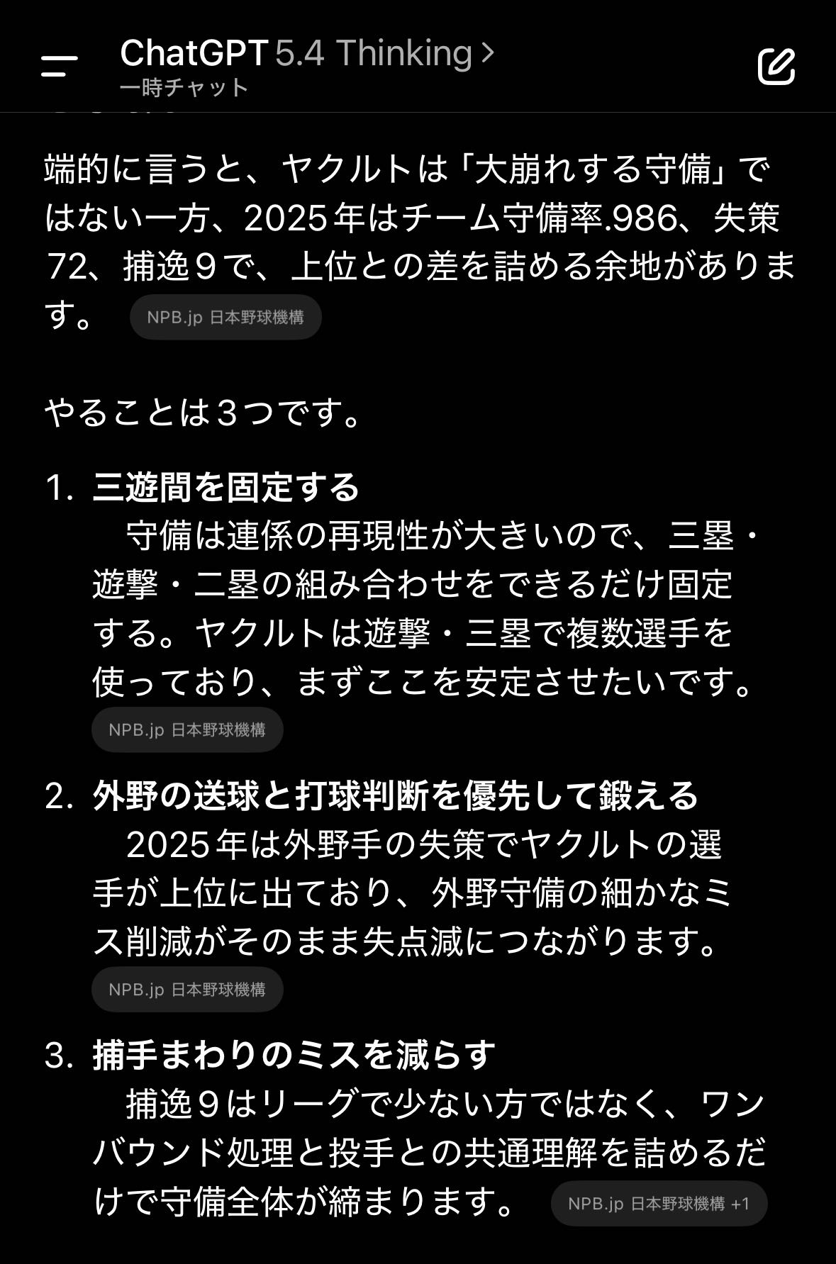 | … | 37226/03/17(火)10:24:33 ID:BpwRkJ4.No.1411546215+🐧<ねぇGemini、どうしたら守備が上手くなる? |
