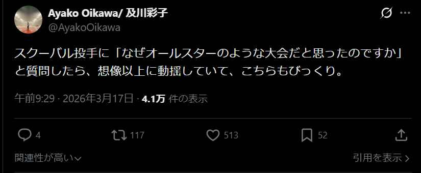 | … | 2026/03/17(火)09:12:41No.1411533041そうだねx1両チーム総合的に野球が上手くない? |