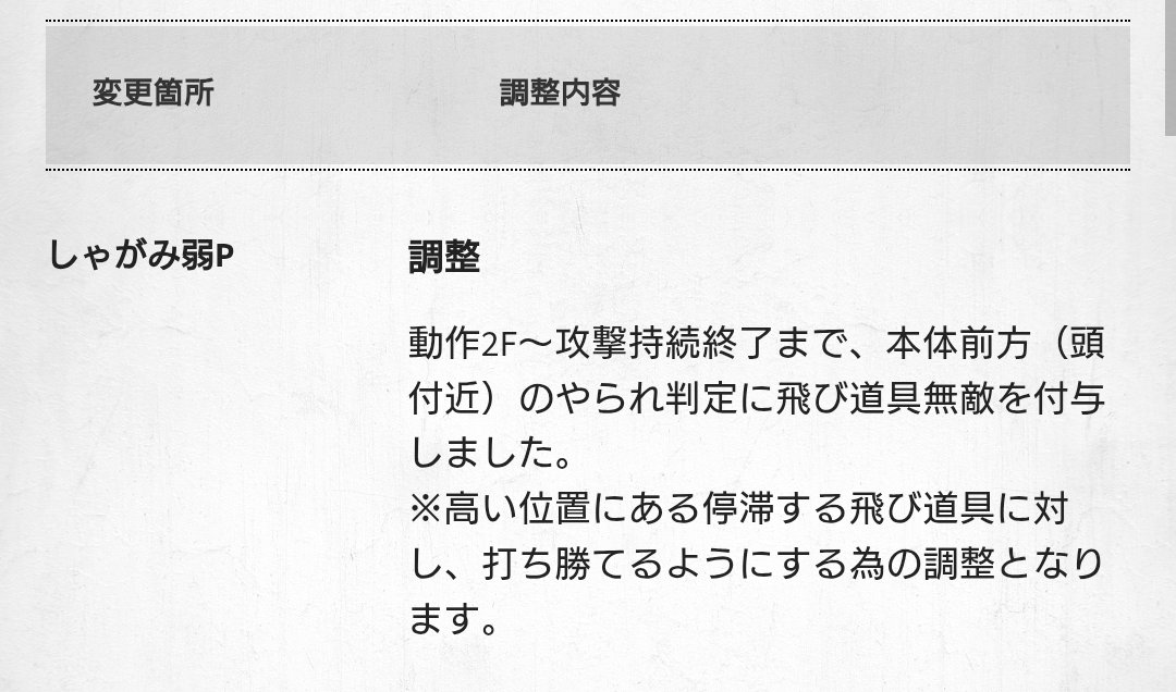 みんなが当たり前に持ってたやられ判定増やしてちょっと弱くはするけど代わりの物をあげます!