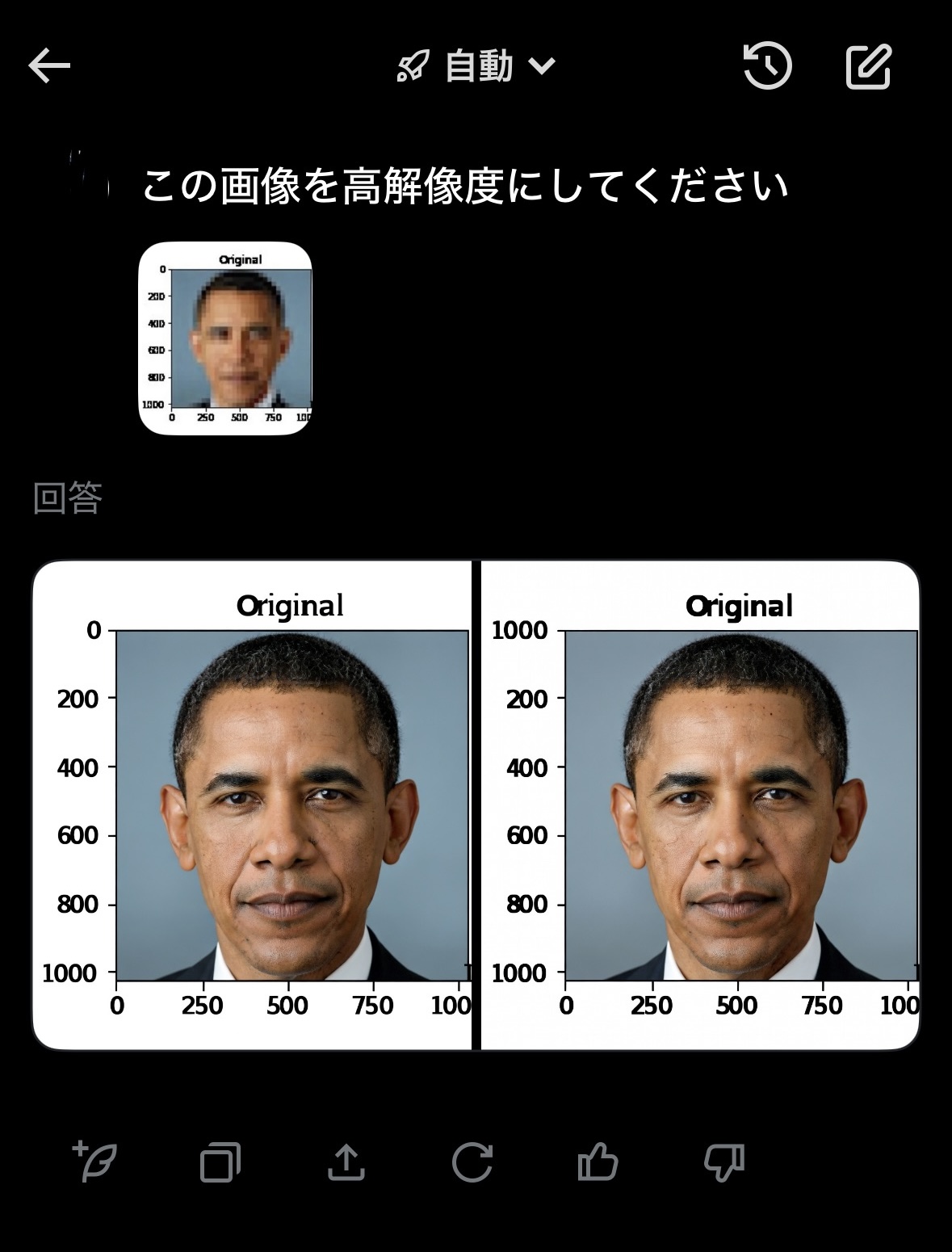 | … | 4126/03/17(火)18:12:02No.1411653967+今のほうもオバマと見立ててオバマっぽい画像を生成してる感じだな… |
