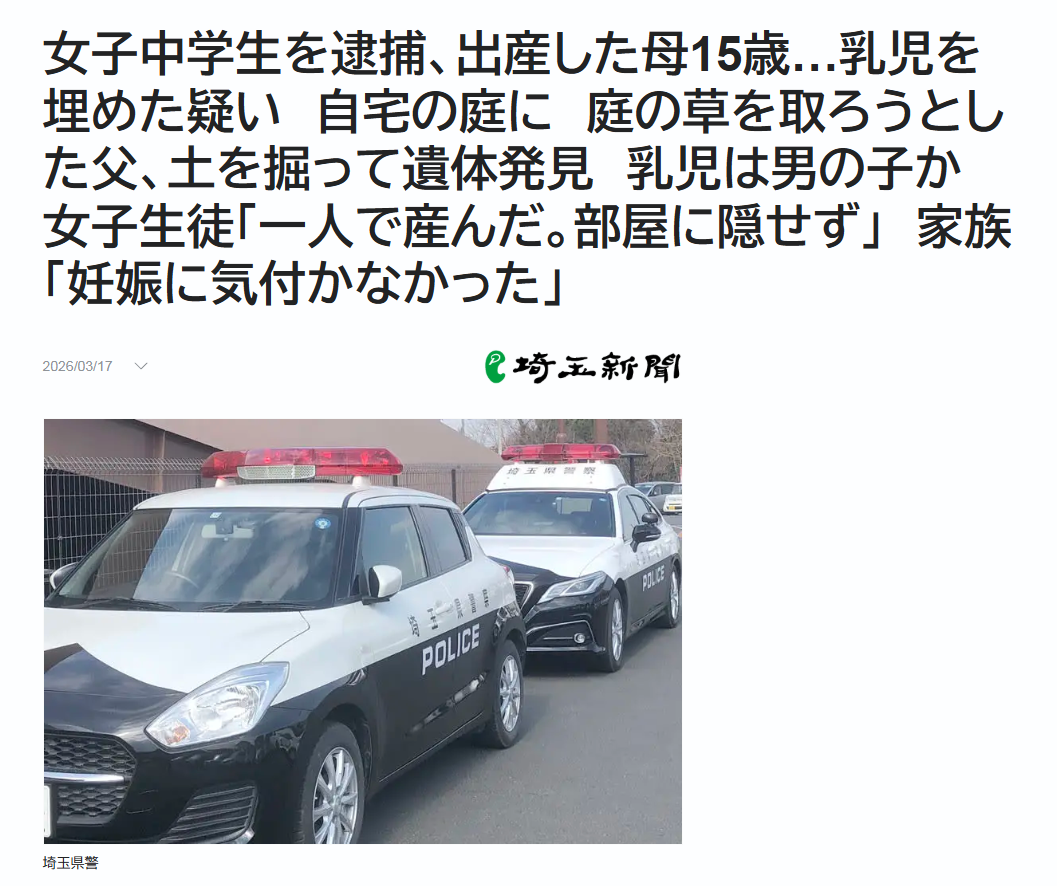 | … | 326/03/17(火)16:36:29No.1411631302そうだねx2815歳娘の臨月に全く気づかない両親 |