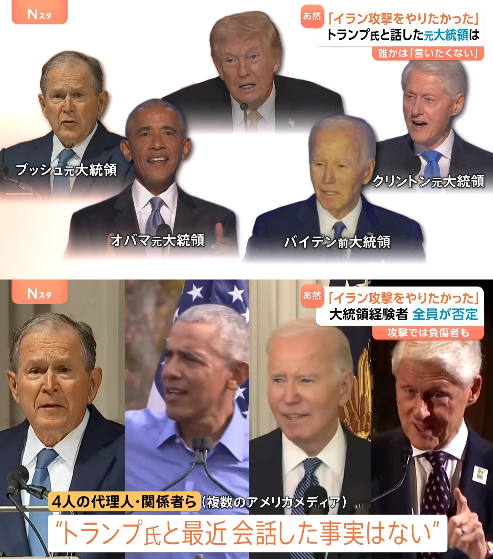 | … | 6226/03/17(火)17:05:50No.1411637723+ブッシュ・オバマ・クリントン「トランプ氏と最近会話した覚えはない」 |
