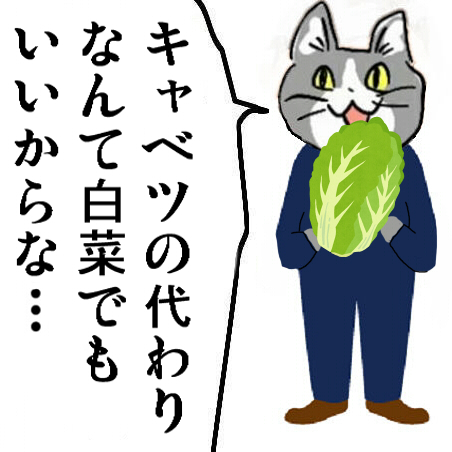 | … | 5926/03/17(火)19:26:02No.1411677222+>むしろ白菜の代わりにキャベツだろ |