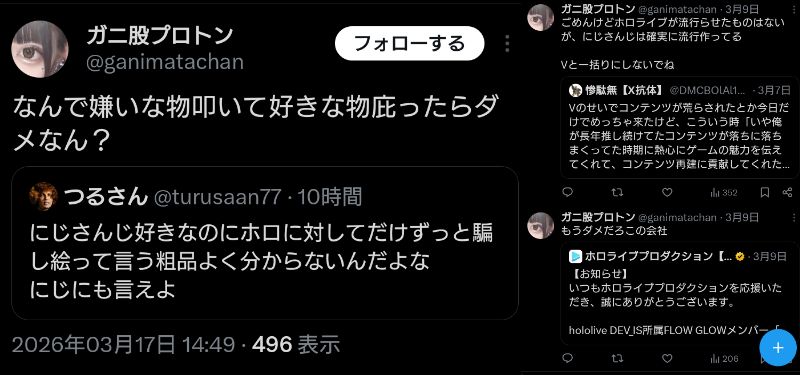| … | 626/03/18(水)01:38:53No.1411794176そうだねx9やっぱりVアンチじゃなくてホロアンチじゃないか |