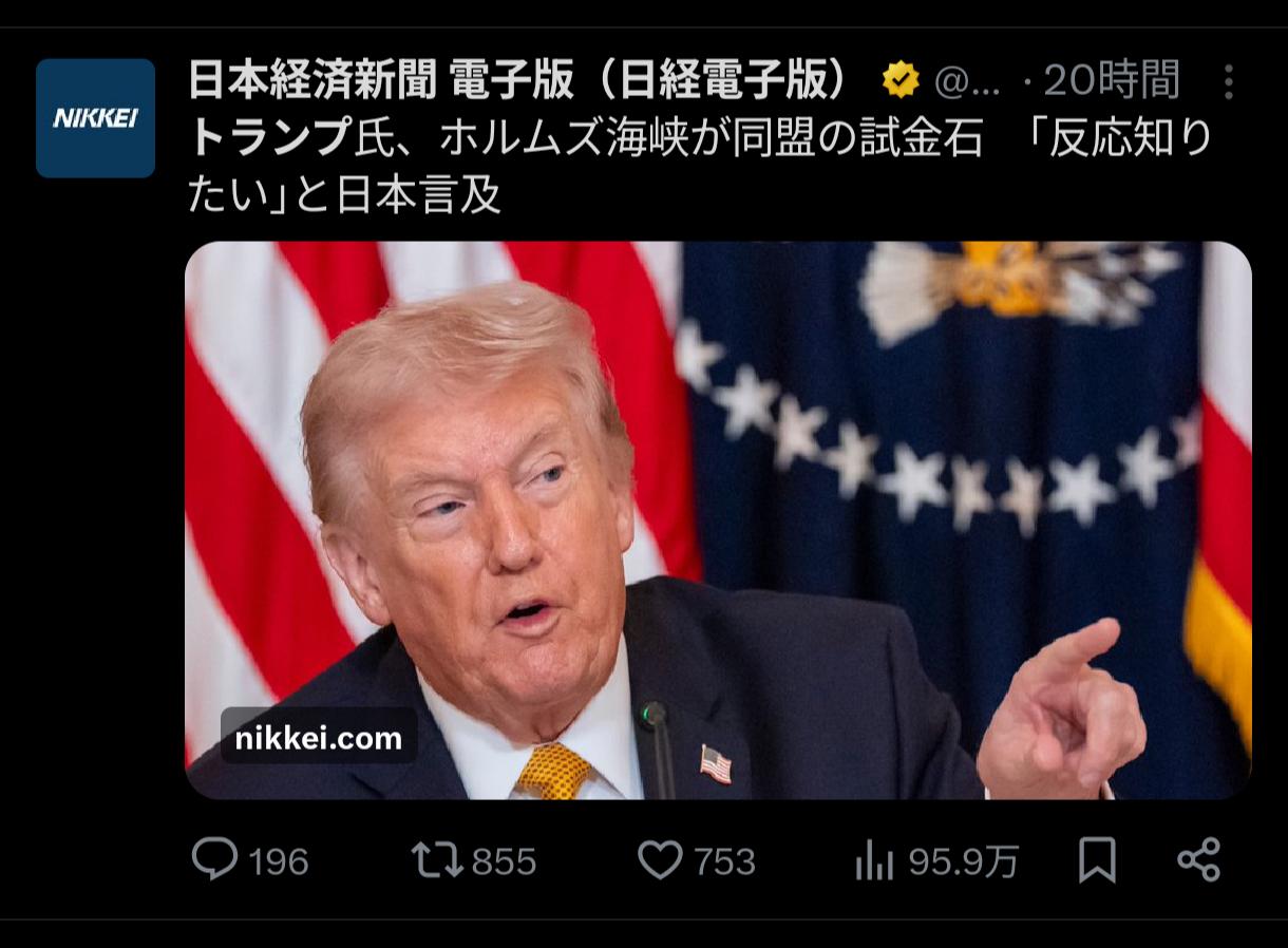 | … | 6026/03/18(水)06:59:30No.1411808847そうだねx1原油ルートも確保したし頑張ってるやん日本 |
