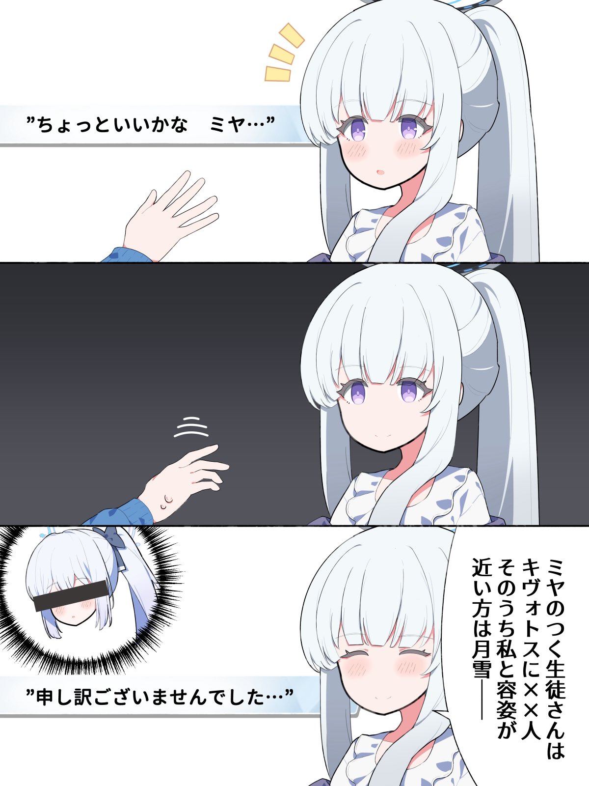 | … | 9626/03/18(水)07:00:51No.1411808940+"ナギサ、君の乳は欺瞞だ" "君の嘘は私が必ず打ち砕く" |