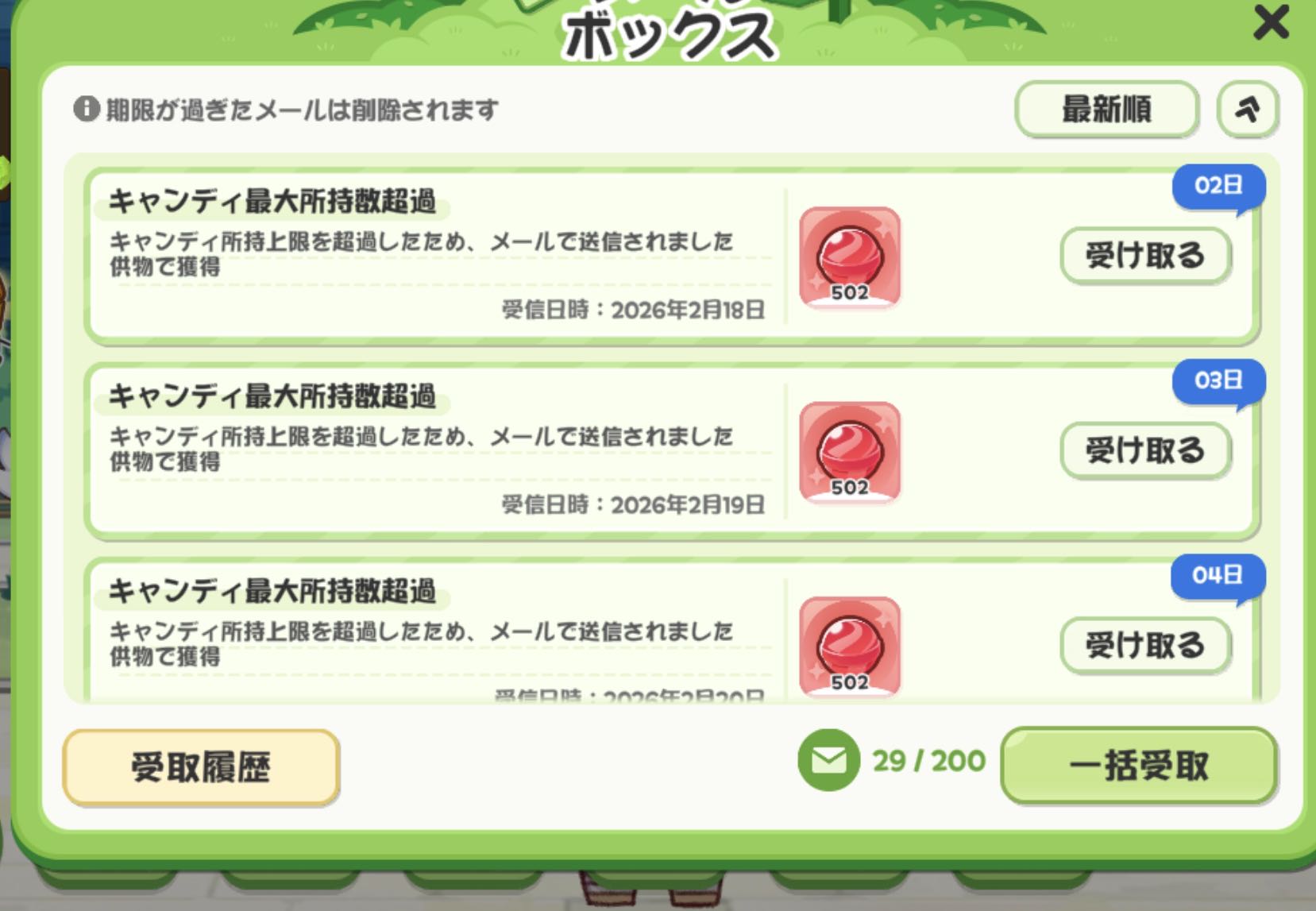 | … | 19626/03/18(水)10:23:16 ID:RvAOMQa6No.1411837646+自然回復キャンディ満タン+ショップ100+定時の50×2+石割りetcでキャンディ増やして それ+供物で1000超えるように供物を受け取ればキャンディ貯め完遂ニャン 時間調整めんどくせぇにゃん |