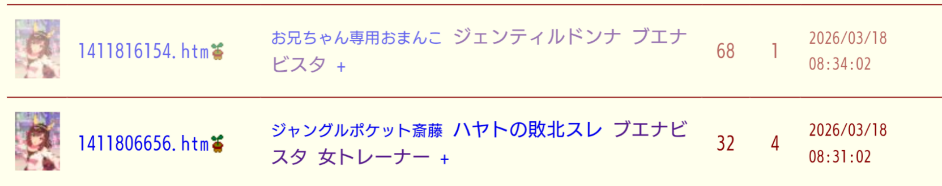 | … | 1026/03/18(水)08:13:08 ID:NZQbRXjQNo.1411816531+ぶう… |