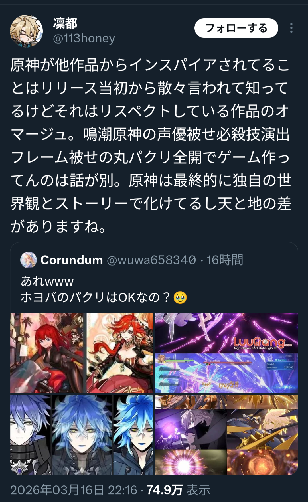 | … | 1426/03/18(水)11:18:12No.1411846693そうだねx5というか原神は別に何かの盗作やってるわけじゃないし… |