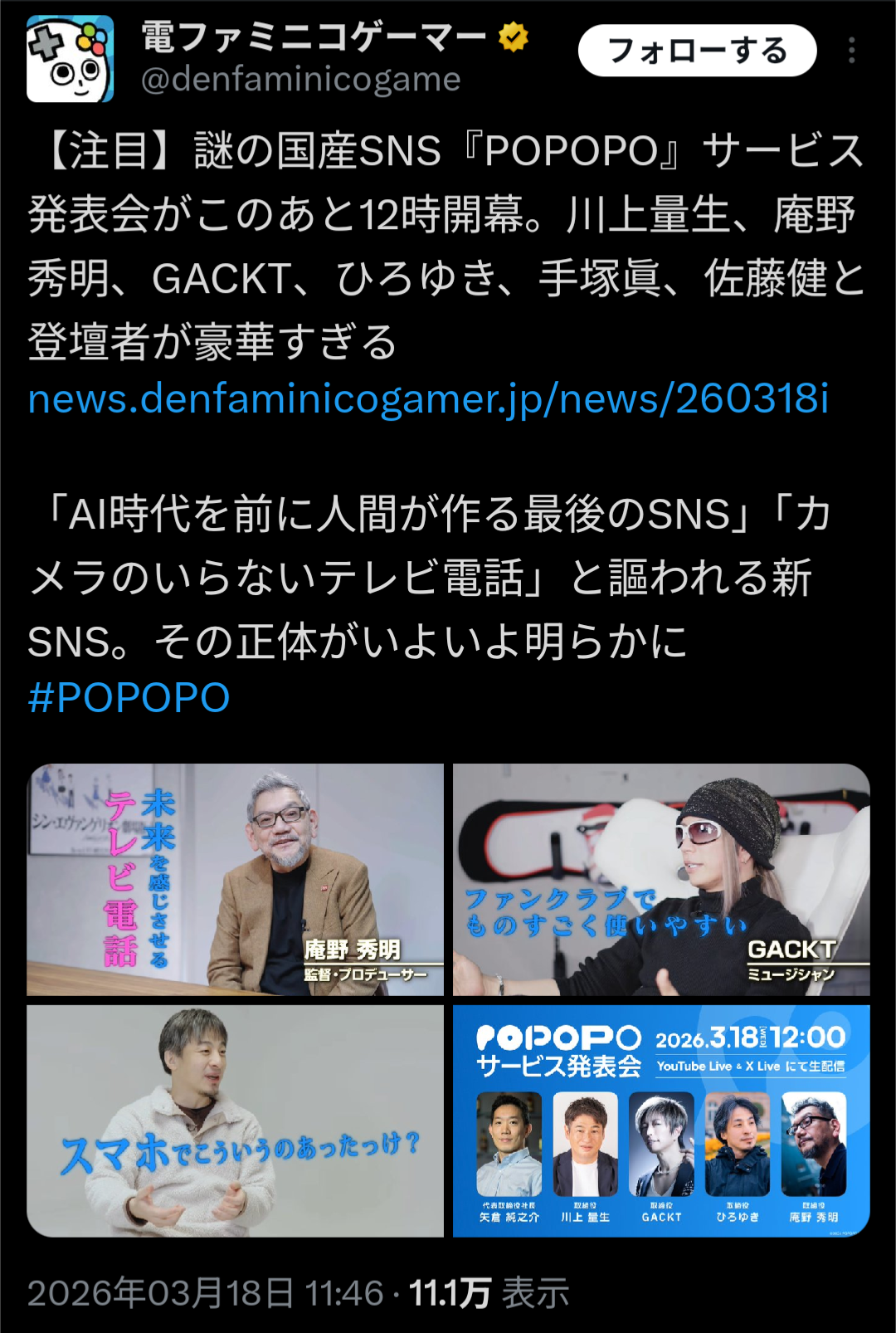 | … | 2026/03/18(水)12:23:33No.1411864148そうだねx57ホリエモンもいたらパーフェクトなのに |