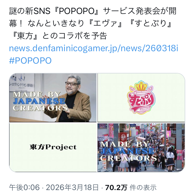 | … | 226/03/18(水)13:20:48No.1411881576そうだねx5ドワンゴがいるし同じ代理店がプロモーションしてるのか? |