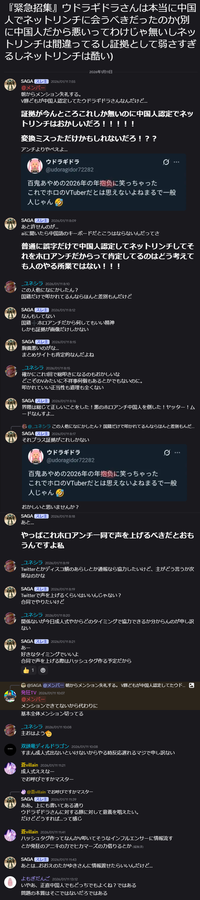 | … | 8926/03/18(水)21:27:16No.1412008537そうだねx8一周回ってにじリス以外のVファン民度良すぎねぇ?ってなってるのちょっと笑っちゃう |