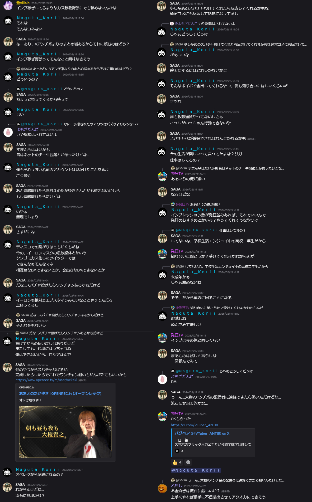 | … | 8626/03/18(水)21:26:25No.1412008230そうだねx2>Vtuberが嫌われる原因のほとんどがファン層の質が悪いからだと思う |
