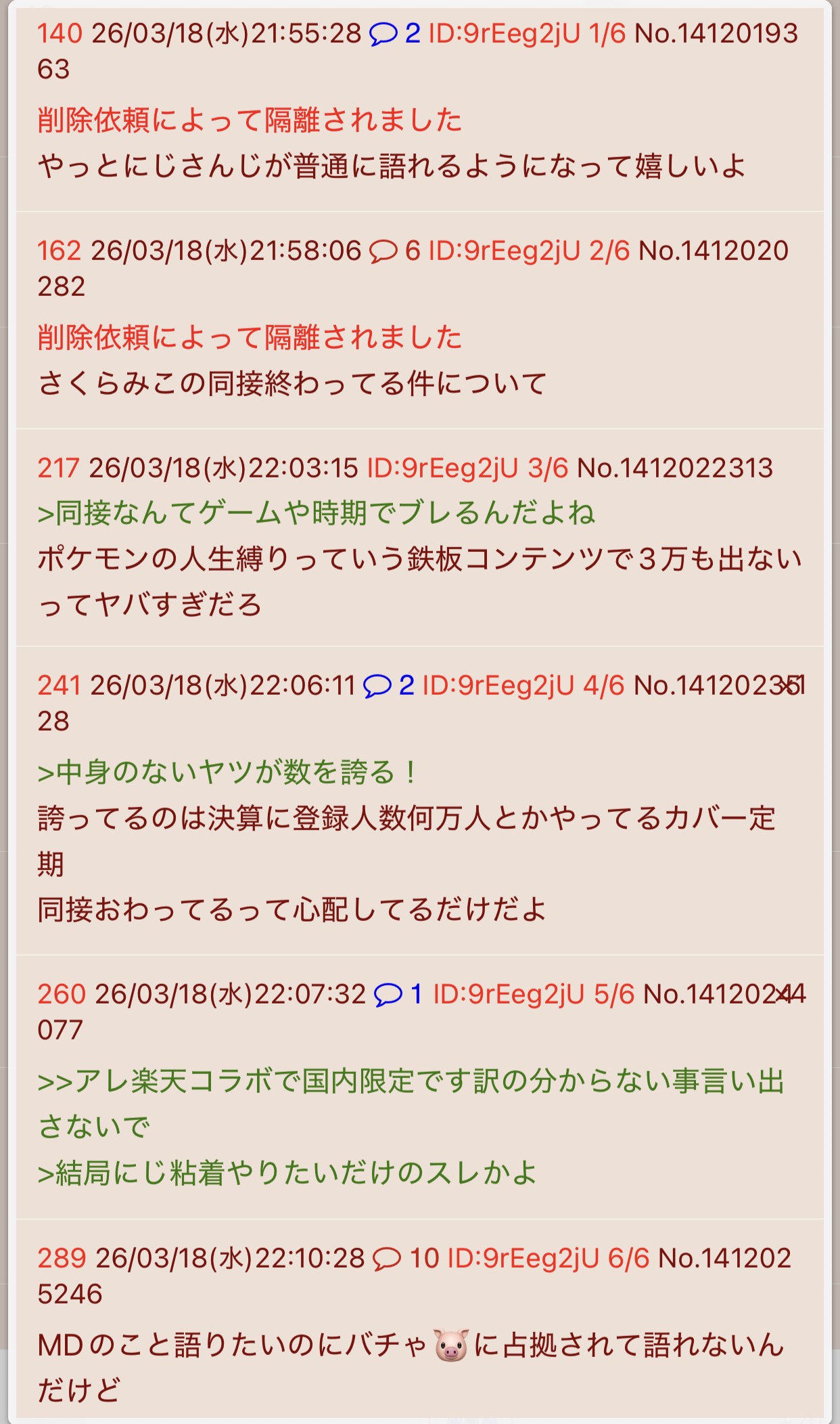 | … | 8326/03/18(水)21:44:18No.1412015146そうだねx2>楽しいから粘着するんやない |