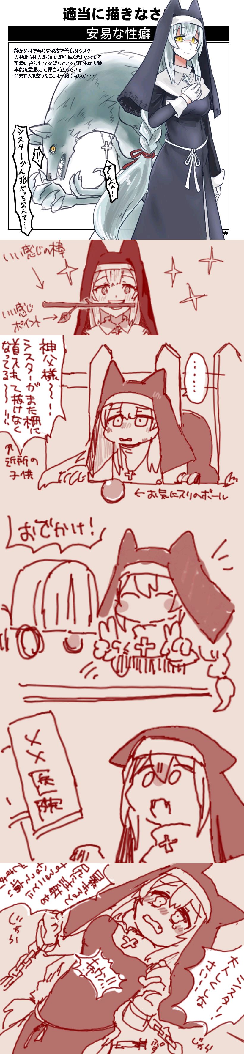 | … | 1626/03/19(木)14:08:45No.1412180740+最初はほら来た系シスターだったのにいい感じの棒お手書きが投下されたばかりに… |