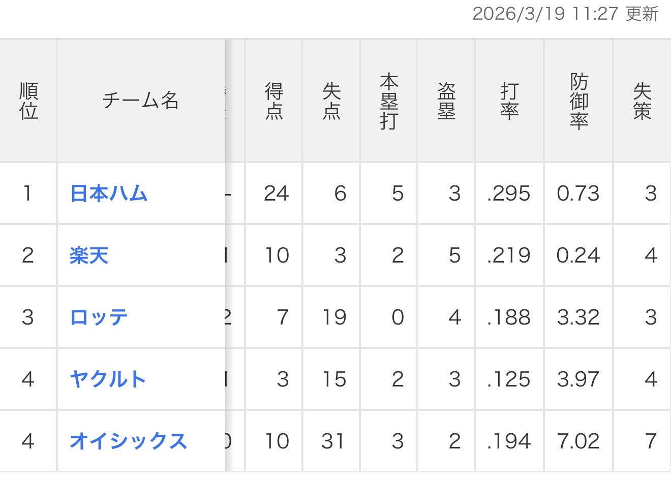 | … | 35726/03/19(木)16:09:43 ID:dkokylM6No.1412203523+>2軍エラー数 |