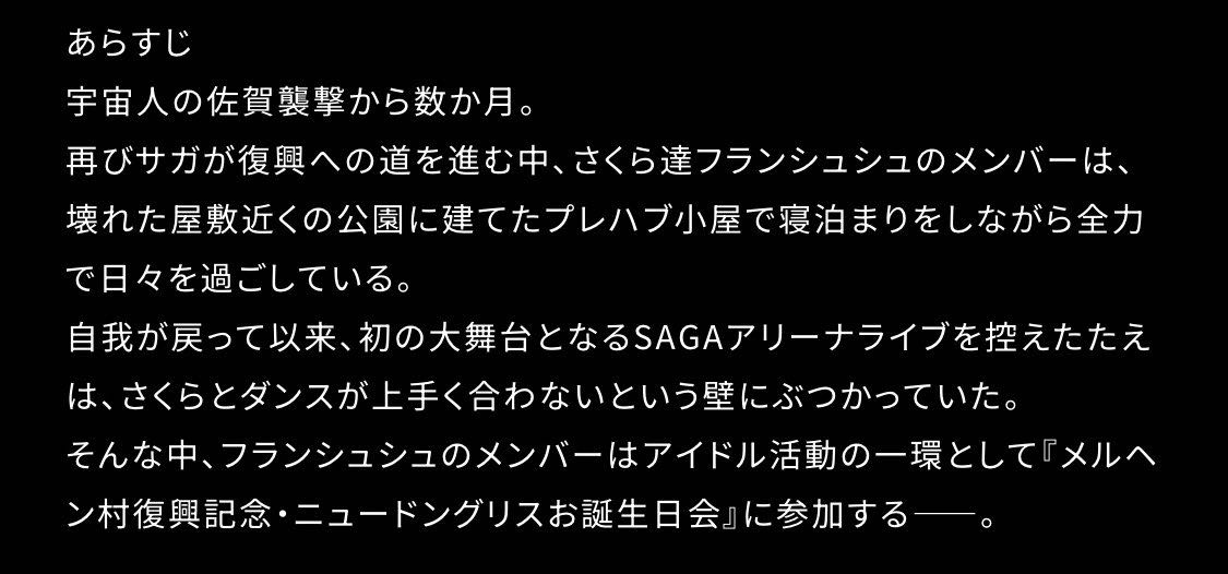 | … | 526/03/19(木)18:22:17No.1412234539そうだねx3>劇場版『ゾンビランドサガ ゆめぎんがパラダイス』の裏で、SAGAアリーナライブを目前に控えた |