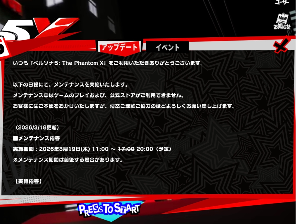 | … | 626/03/19(木)19:06:51No.1412246470+仕事終わったらメンテ明けてるはずだったのにいつの間にか20時予定になってるじゃないかクソガキ… |