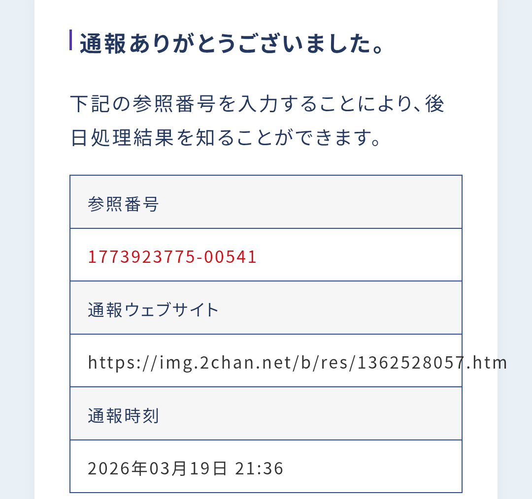 | … | 2426/03/19(木)21:36:20No.1412299547そうだねx7>こういうのってどこに報告すればええの? |
