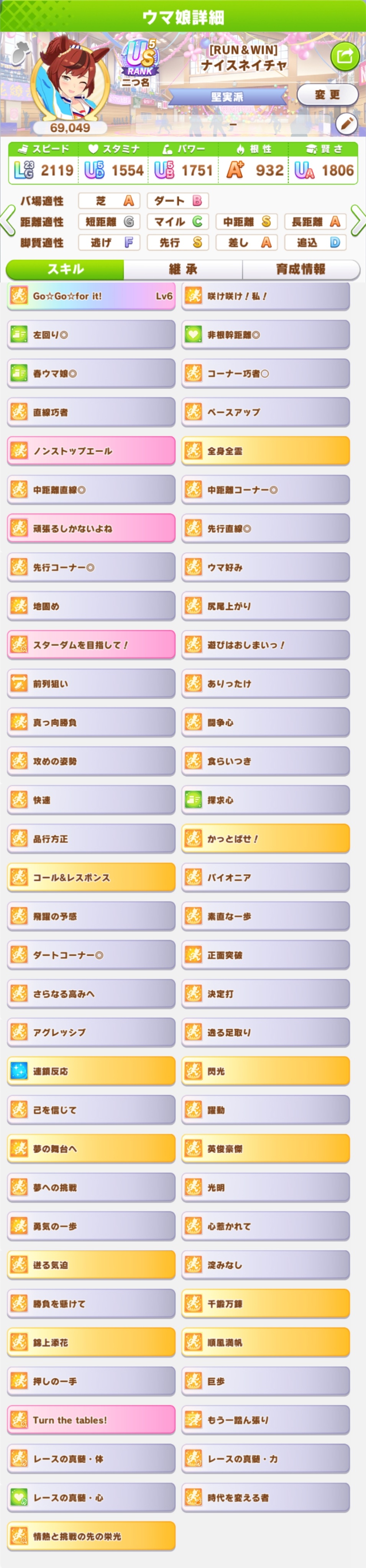 | … | 5726/03/20(金)00:45:06No.1412363080+>今回のチャンミは根性よりスタ賢さ伸びてるほうが嬉しいと思います 根性凹んでいるという事はスタも凹んでいるわけでして… ううううスタ1400ですもうおしまいsづえs |