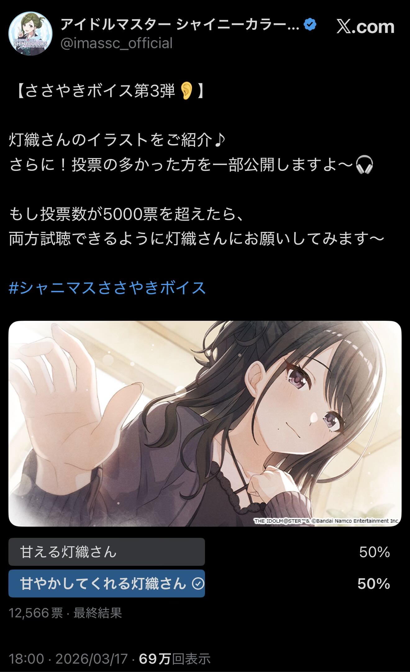 | … | 4926/03/20(金)12:32:26No.1412449034+園の話で申し訳ないけど灯織ボイスもうきたの!? お金準備できてない破産しました |