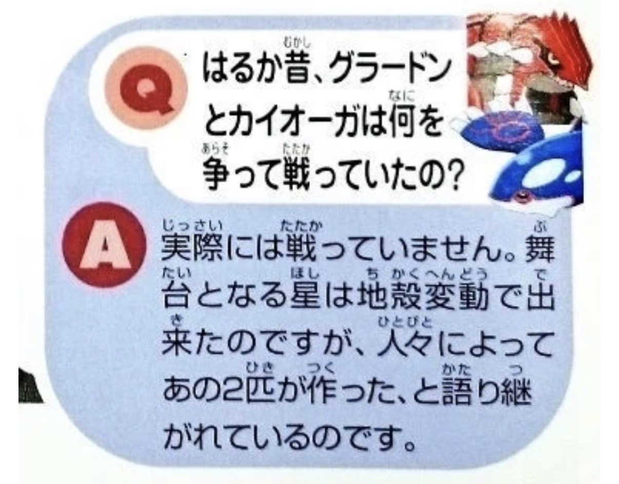 | … | 3126/03/20(金)16:18:09No.1412506838+>グラードンはなんか歩くだけで地面増えるカイオーガと仲悪い古代のクソ強いポケモンってだけで実際は大昔戦ったわけではないらしい |
