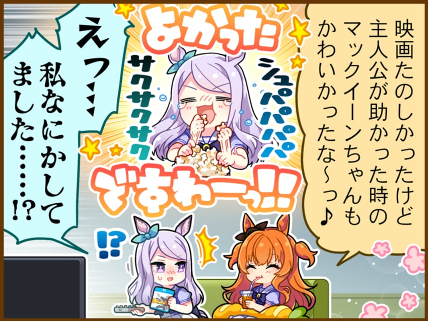 | … | 126/03/20(金)18:33:43 ID:cdwYYYxENo.1412541696+>マックイーンが映画鑑賞してるぞ! お前は誰ですか! |