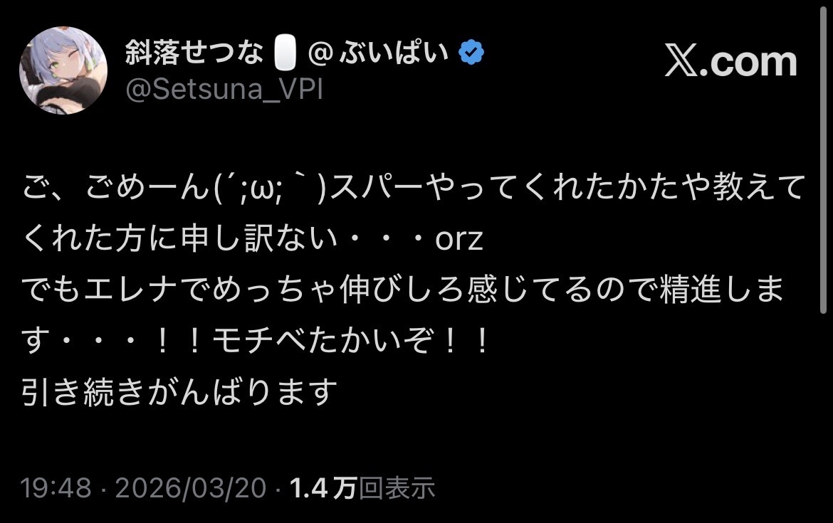 | … | 226/03/21(土)00:30:48 ID:SypoyMTsNo.1412676413そうだねx1みんなこんばんは。 |