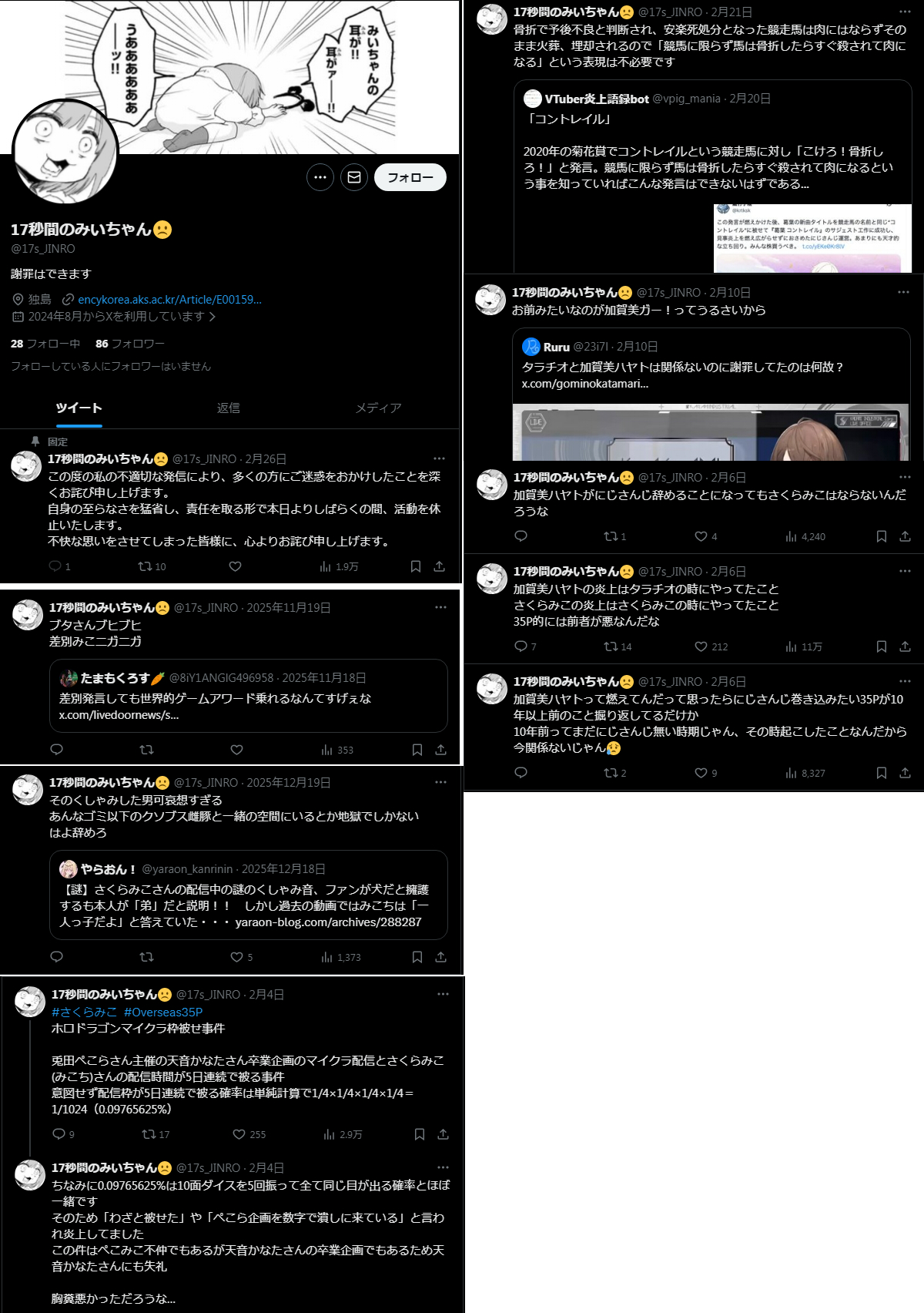 | … | 326/03/21(土)01:34:57No.1412692339そうだねx10休止じゃなくて垢消せよ |