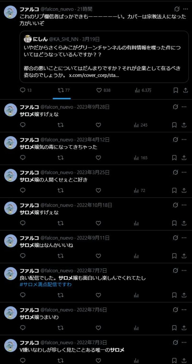 | … | 426/03/21(土)09:30:43No.1412732615そうだねx46見た限りホロのファンでもない部外者なのに何故カバーがアンチ行為や犯罪者を吊ったことに憤ってるんだろう |