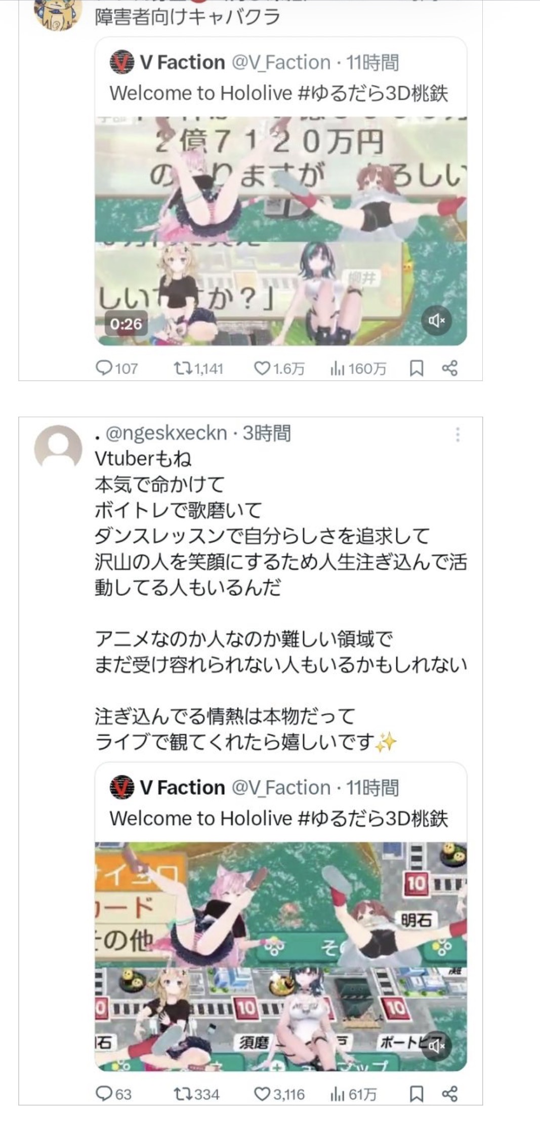 | … | 81626/03/21(土)17:07:35No.1412847908+>>ホロライブは何も悪くない |