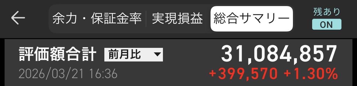 | … | 26026/03/21(土)16:42:53No.1412840766+>>久しぶりに自分の証券口座見たけどここ3年ぐらい余った金は大体積み立ててるはずなのにこの程度だからFIREは夢のまた夢だな… |