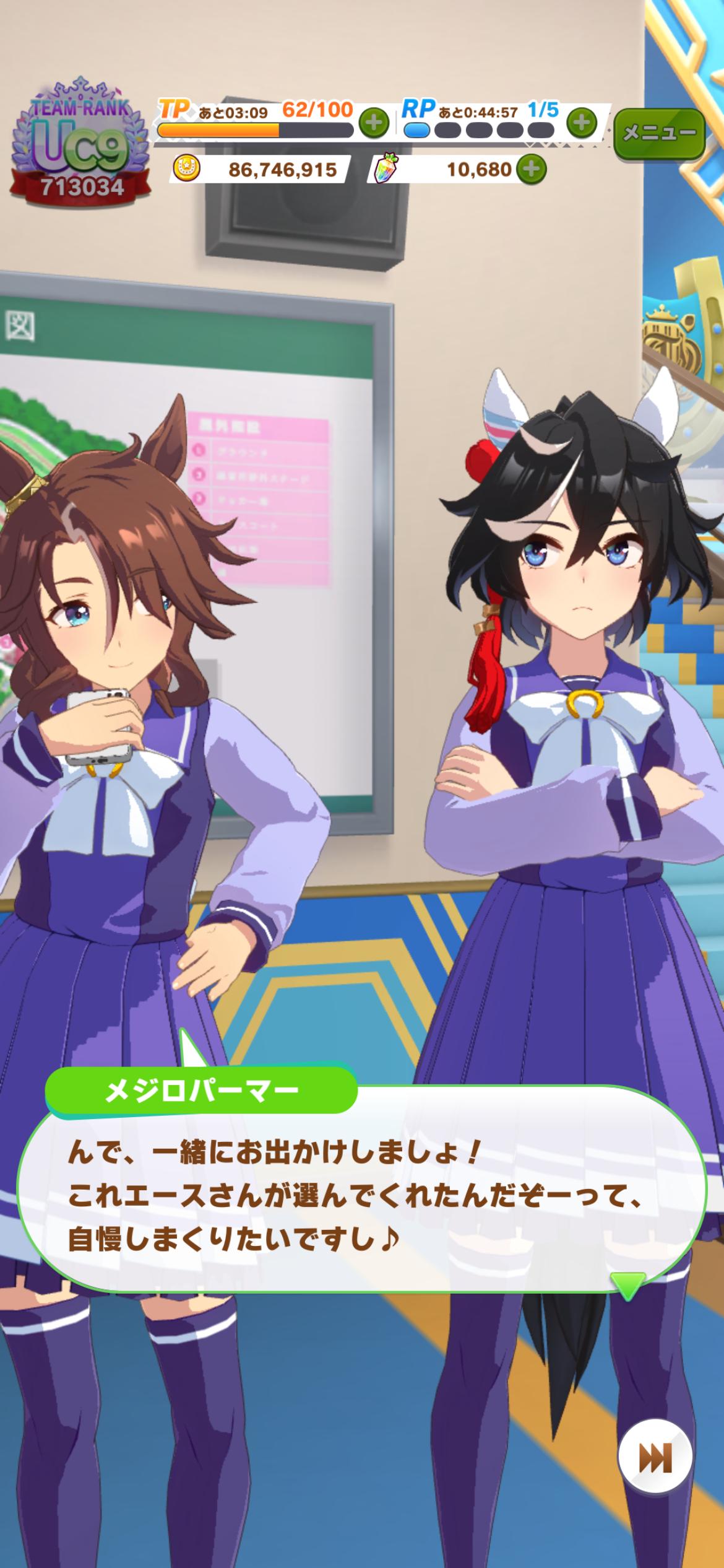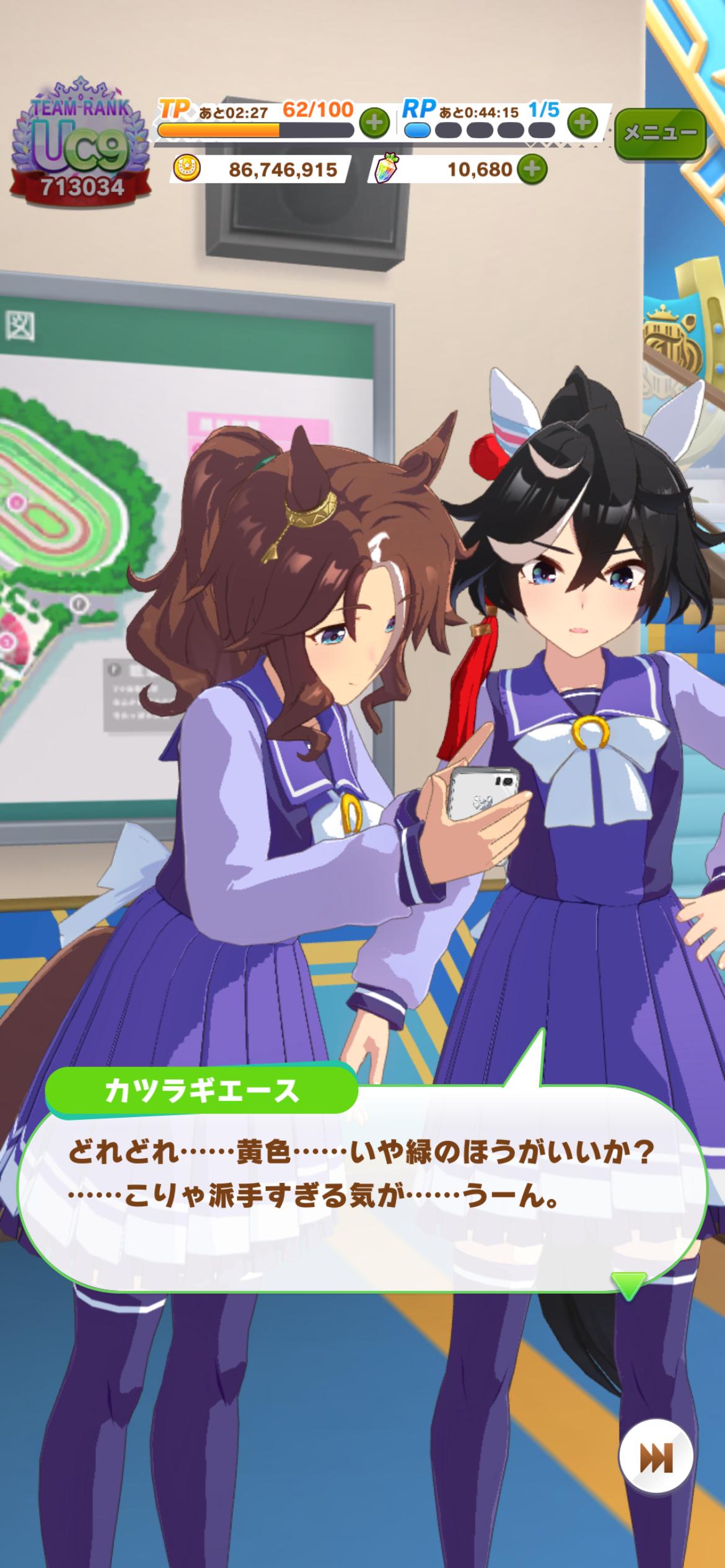 | … | 13326/03/22(日)00:00:40 ID:KSahjc5YNo.1413003959+シナリオじっくり読みたいときは育成もう一個別枠で並行させてほしくなりますね |