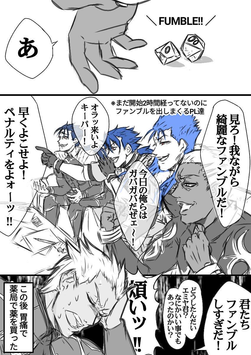 | … | 9226/03/22(日)07:39:28No.1413058233+ファンブル引きまくってシナリオ崩壊させてすまない… |