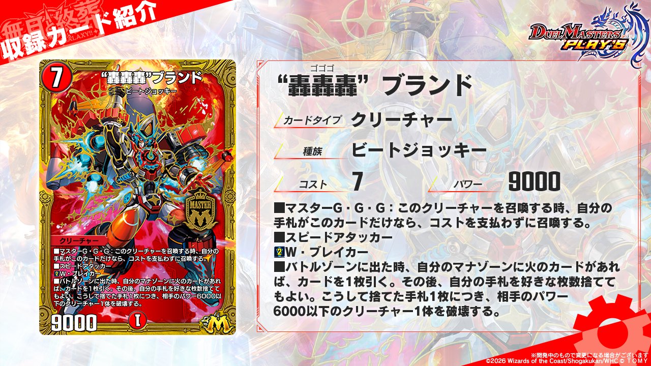 | … | 4726/03/22(日)13:27:58No.1413141698そうだねx1>光も自然も闇も水もなんかオリカだったりテキスト強だったり再録されて強いカード貰ってるのに火文明なんか自力で戦ってる気がする |
