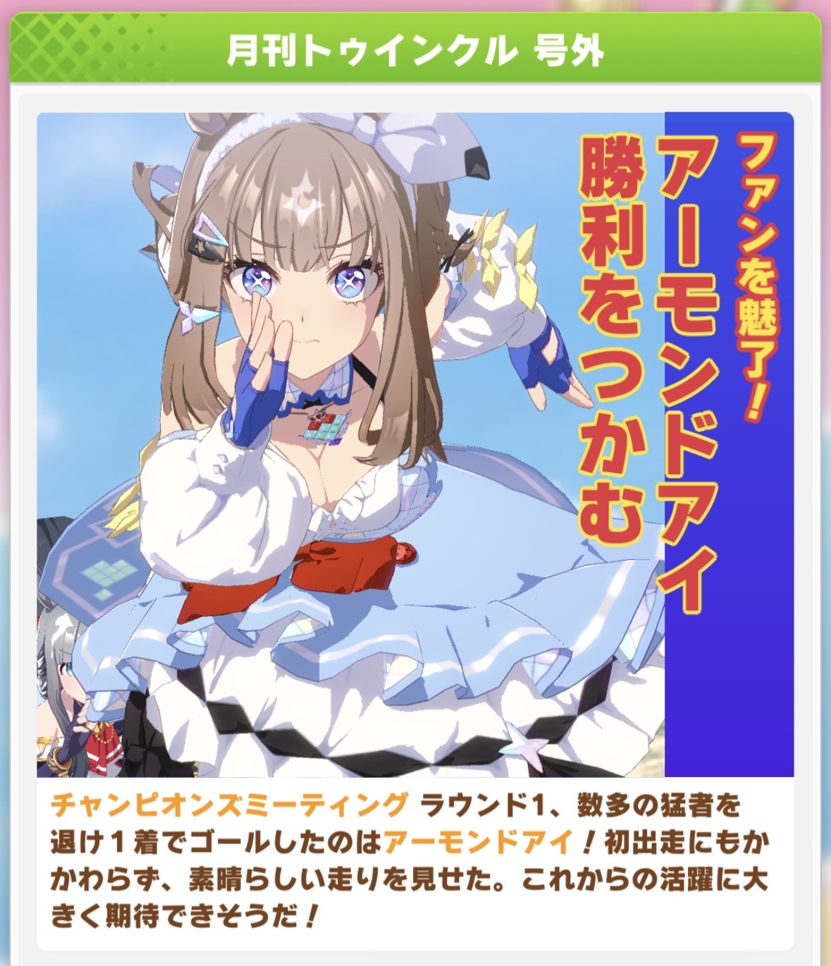 | … | 19426/03/22(日)16:53:13 ID:TGIgQiP.No.1413200083+なんとなくクロノちゃんを一夜漬けならぬ半日漬けでチャンミ用に育成したんですが良い感じに強くて対抗馬っぽい相手のアイちゃん負かして勝ってくれてて嬉しいです |