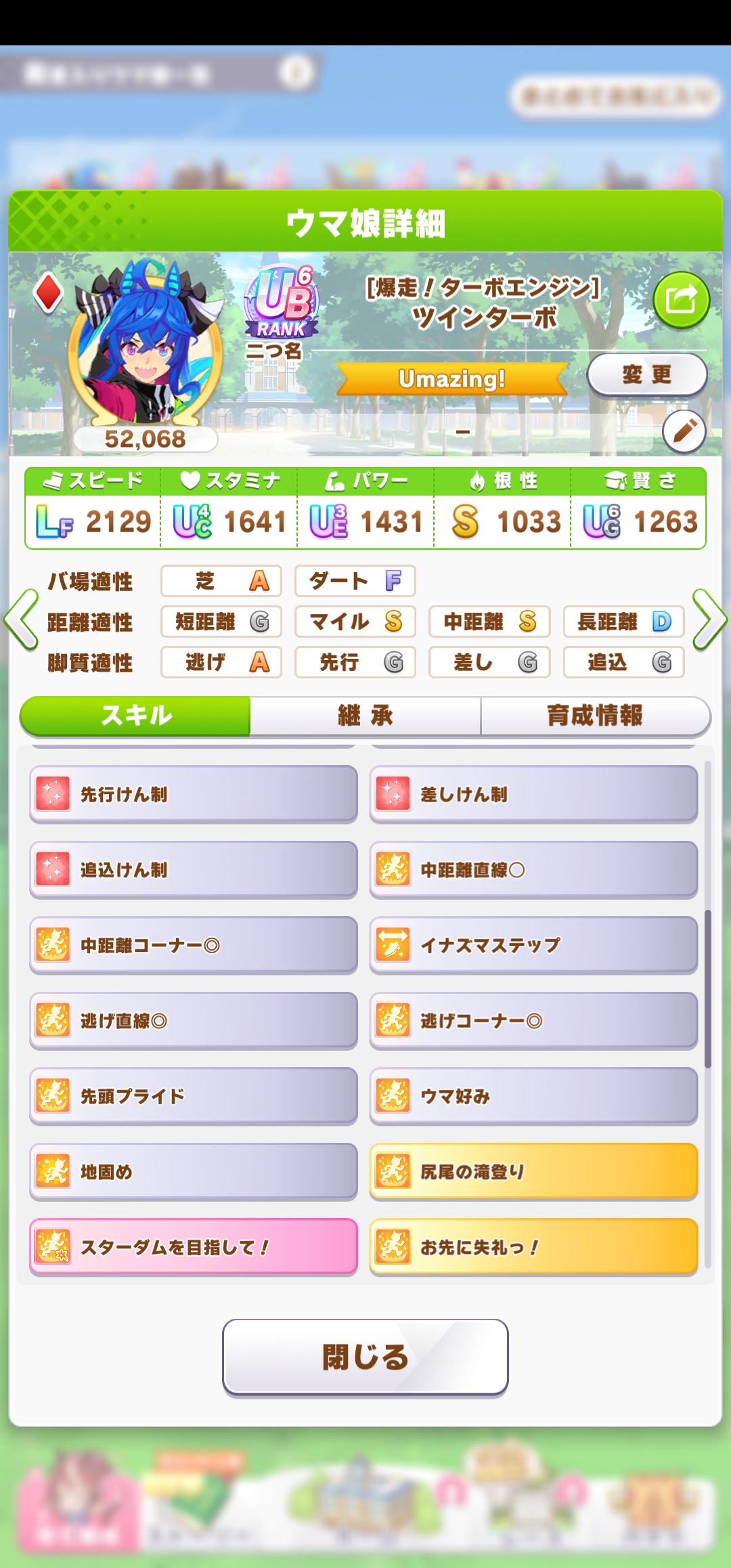 | … | 18626/03/22(日)16:51:17 ID:V7.A0MJwNo.1413199413+まあ今回の大逃げ牽引はデバフより終盤前まで引っ張るのがメインなのでデバフはそこまで必要ないかもしれません スタート時に先頭取れるようなスキル取りにしましょう |