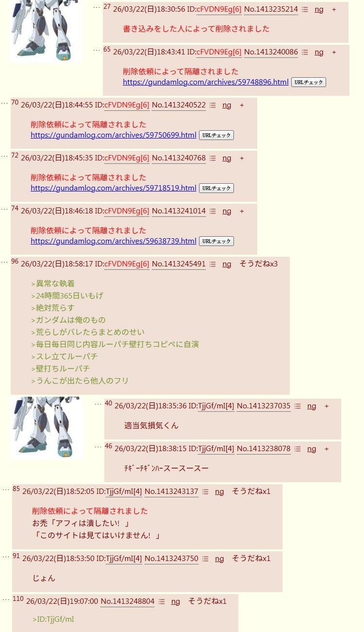 | … | 10426/03/22(日)19:03:59No.1413247645そうだねx1>どんなにスレ荒らしても無駄だぞ |