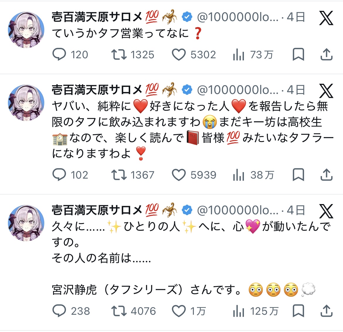 | … | 6026/03/22(日)21:50:26No.1413324930そうだねx5タフ定型ですら浮くってもう逆にすごいよ |