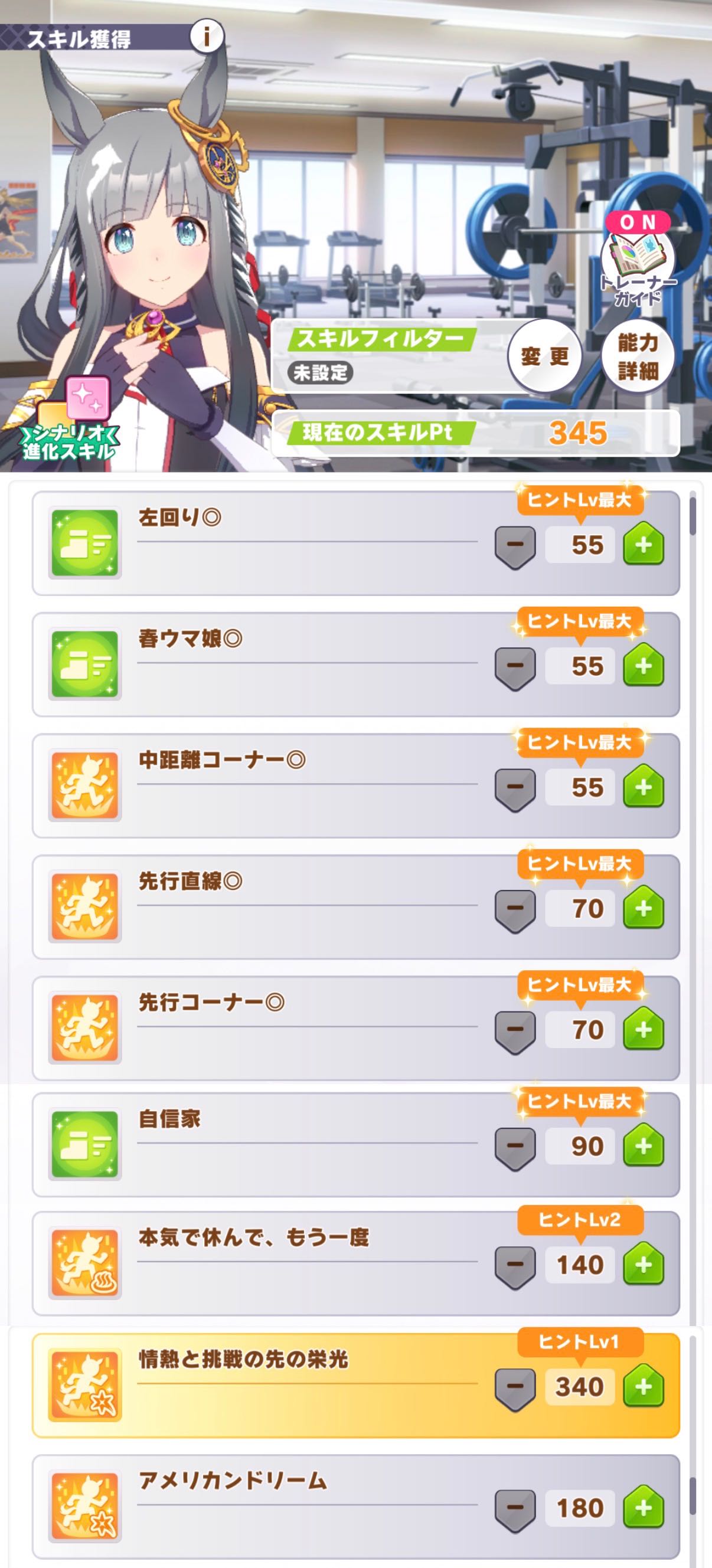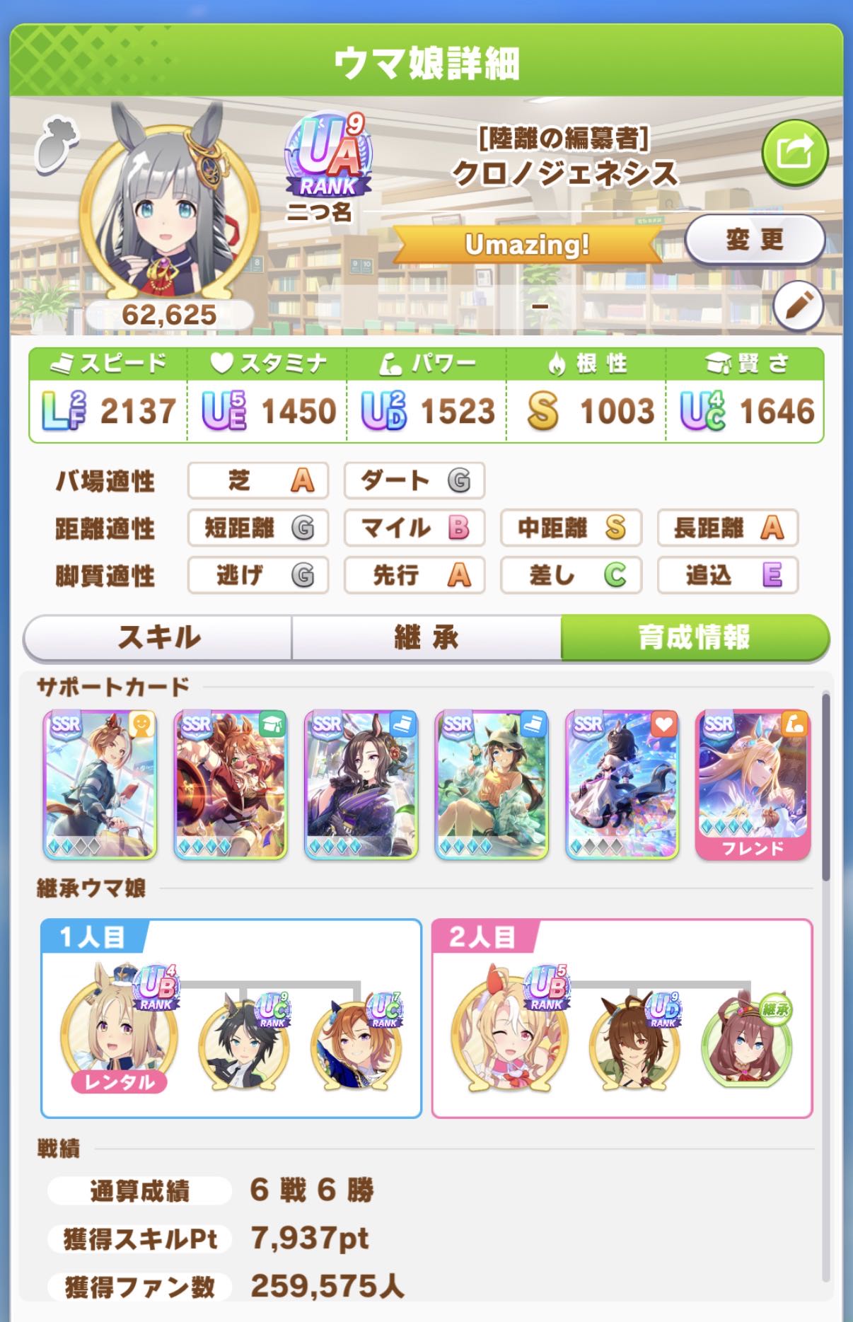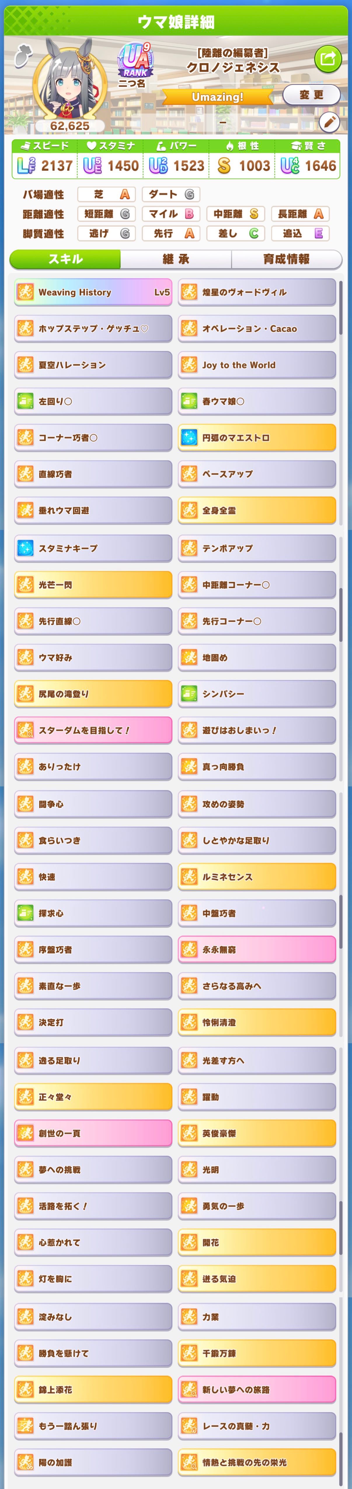 | … | 27126/03/22(日)22:59:38No.1413352198+ウマプランで距離S付かない事は無くなりましたが 切れ者付くと連続イベが途端にやる気無くします |