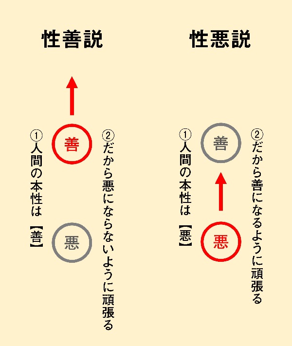 性悪説:人間の本質は悪だから善いものになれるようにお勉強しましょう