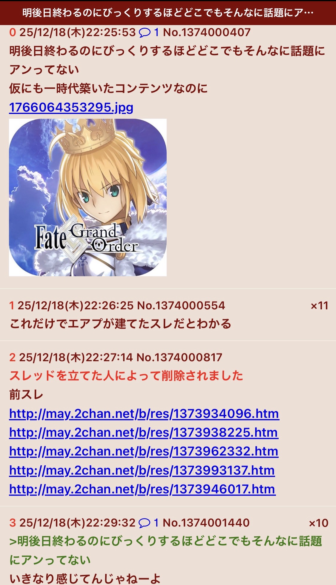 | … | 52526/03/23(月)10:22:29No.1413438880+>レス0てFGOさん… |