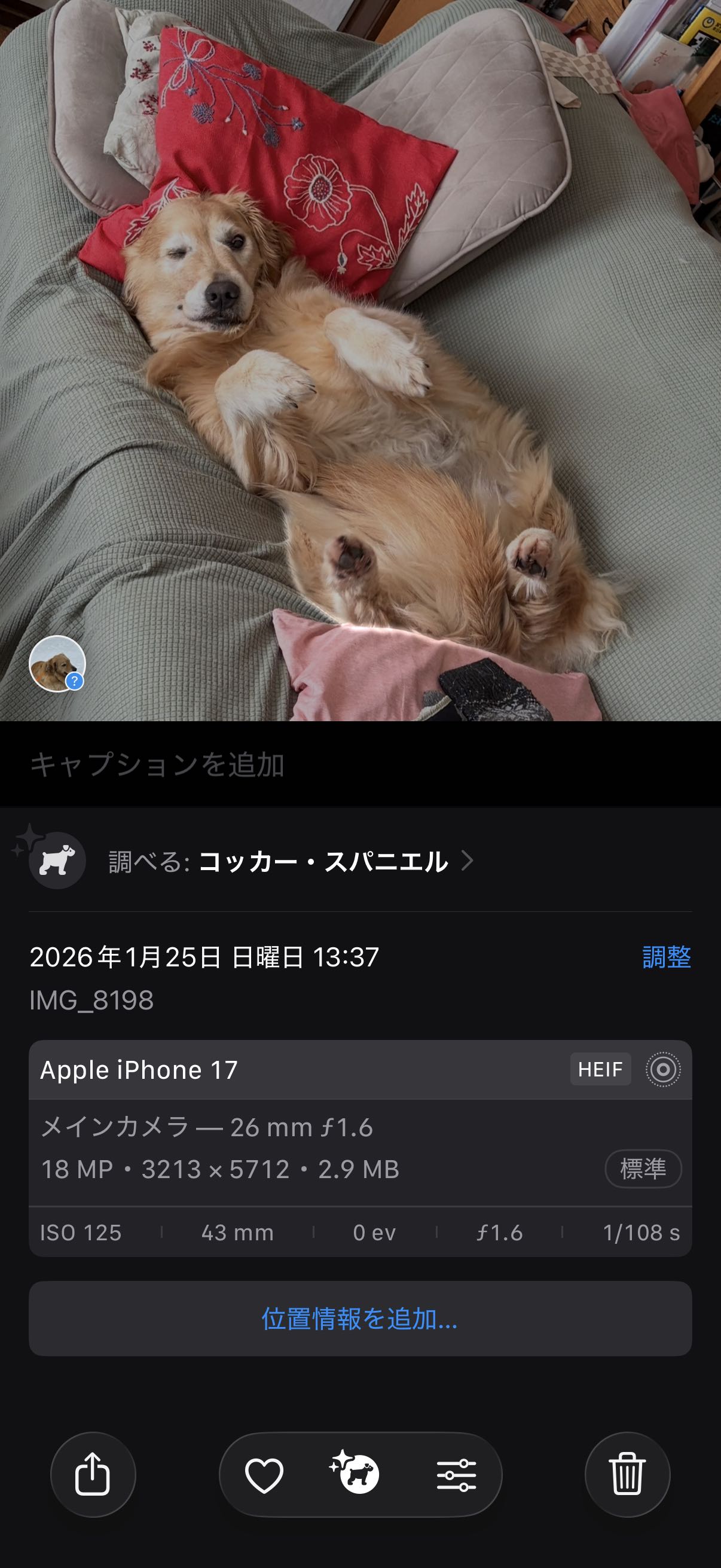 | … | 3026/03/23(月)09:59:49No.1413434922そうだねx6>>目を閉じてる時にうれしい!って感じに見えるのは人間がそう認識してるだけなのかもしれないけど本当に嬉しそうに見える |