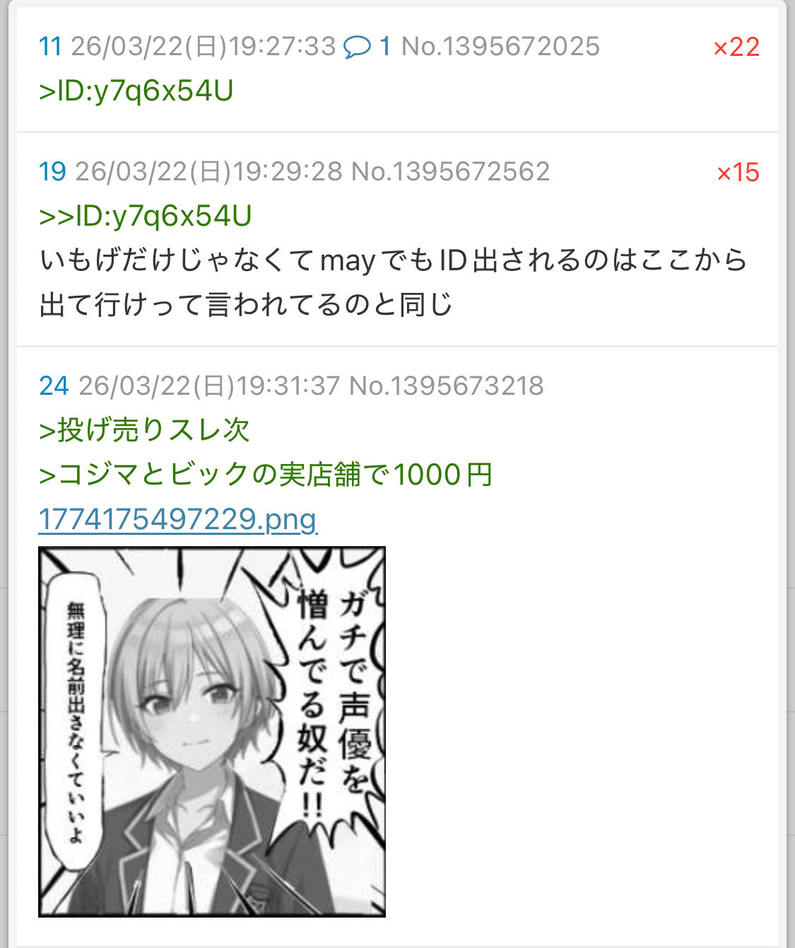 | … | 15326/03/23(月)10:22:58No.1413438958+スレ画は別に… |