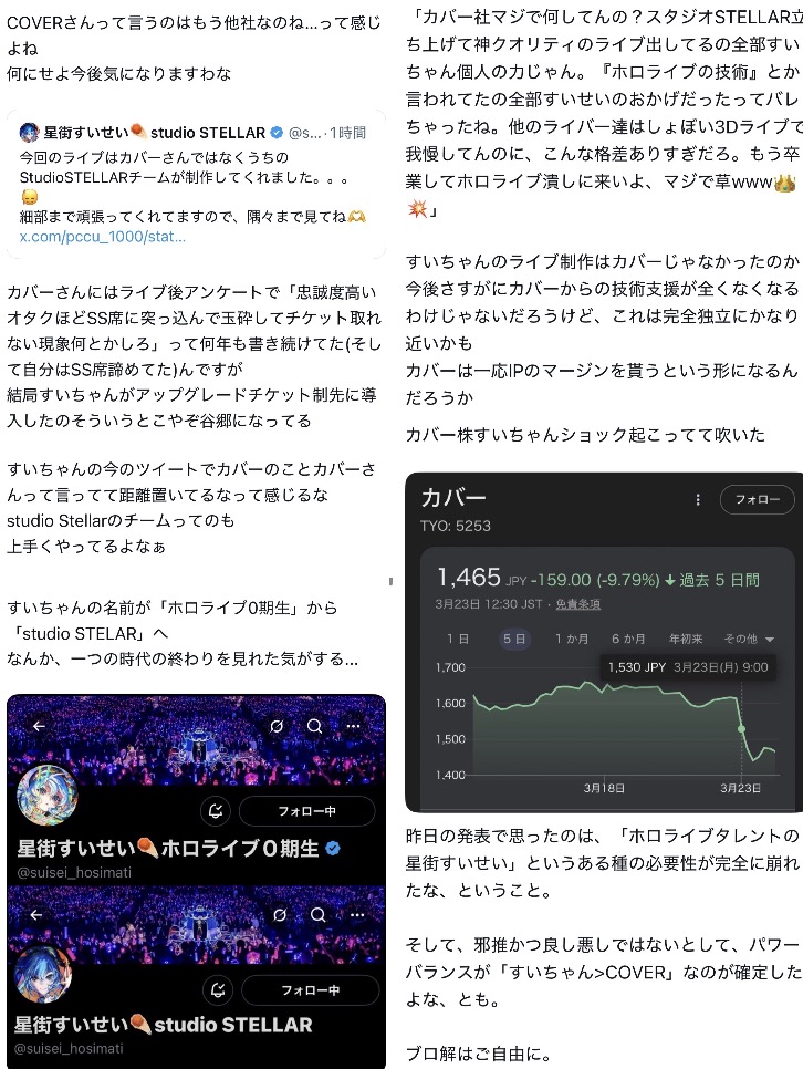 | … | 3226/03/23(月)13:54:08No.1413486524そうだねx14>ホロと関わりは保ちつつ事務所だけ個人にして利益は全部持っていく一番賢いムーブだと思う |