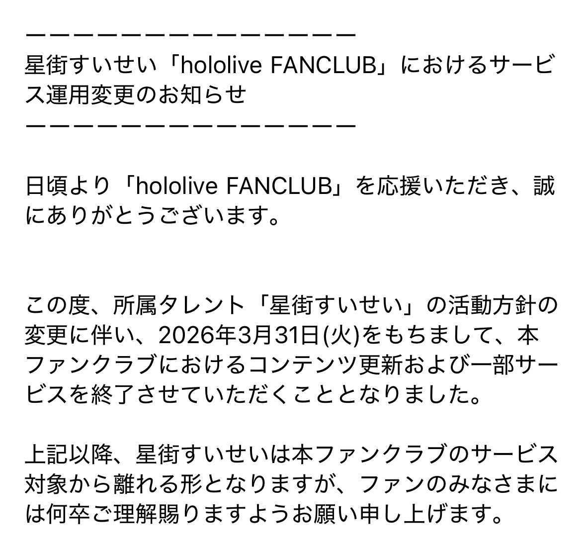 | … | 7926/03/23(月)14:03:15No.1413488289そうだねx11>すいちゃんなんかあったの? |
