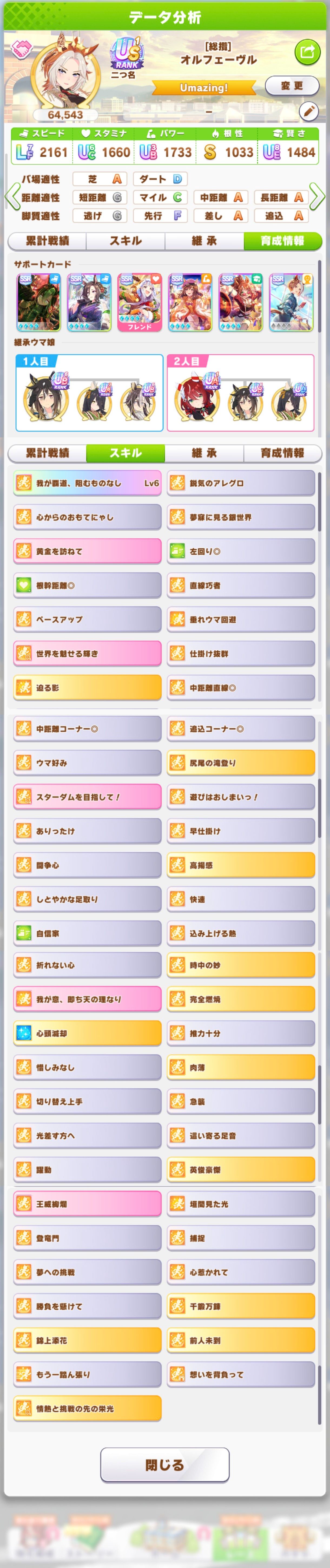 | … | 36626/03/23(月)17:13:04No.1413526382+スタ因子6でスタサポ無し育成したファル子はスタ645にしかならなかったのだ |