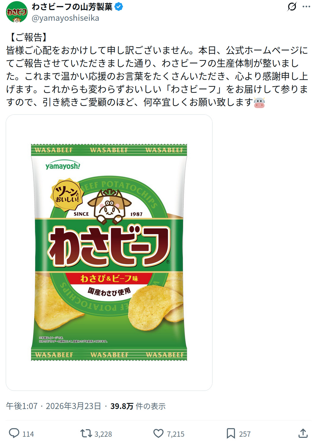 | … | 1026/03/23(月)14:06:33No.1413488976+西野と馬鹿社長はもう関わってないし味も戻ったから久しぶりに買った |