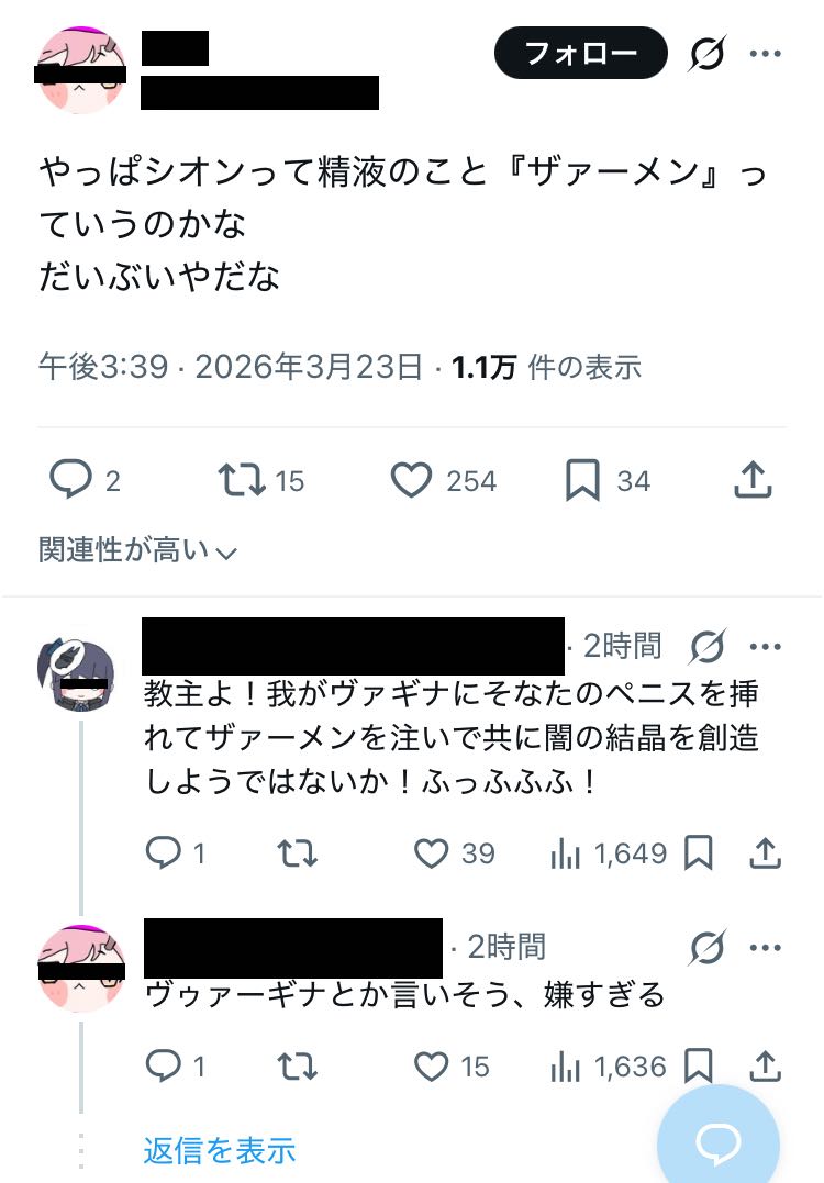 | … | 28026/03/23(月)23:54:37 ID:XmIyefa6No.1413676512+渋で上げたえちほっぺ小説(直接的な描写なし)がいつの間にか200いいね超えてて意外な需要の高さに驚いたんだね |